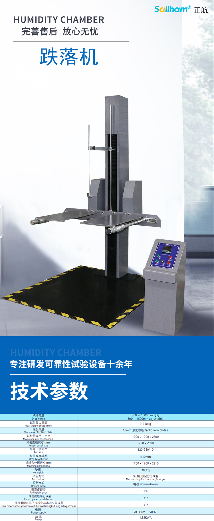 本機(jī)專用于測(cè)試產(chǎn)品包裝受到墜落之受損情況,及評(píng)估運(yùn)輸搬運(yùn)過(guò)程時(shí)耐沖擊強(qiáng)度??蓪?duì)包裝件的面、角、棱作自由跌落試驗(yàn),配備數(shù)顯高度顯示儀及采用譯碼器進(jìn)行高度跟蹤,從而能的給出產(chǎn)品跌落高度,與預(yù)設(shè)跌落高度誤差不超過(guò)2%或10mm。